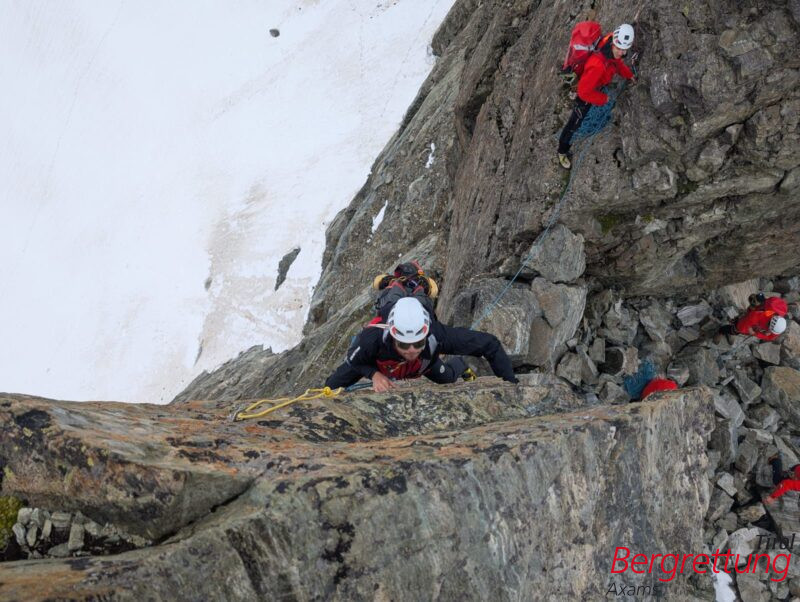 Am Dienstag stand die Tour auf die Bergretterspitz auf dem Programm. Zunächst führte der Weg über einen steilen Gletscher, anschließend folgte eine abwechslungsreiche Gratkletterei im fünften Schwierigkeitsgrad. Den Abschluss bildete ein luftiger Abseiler. Ein fordernder, aber rundum gelungener Tag mit großartiger Aussicht und alpinem Charakter.