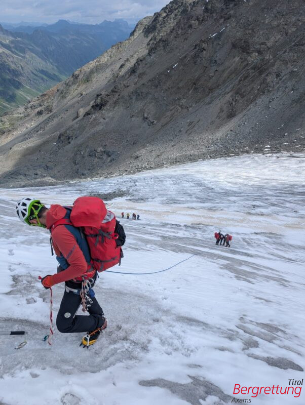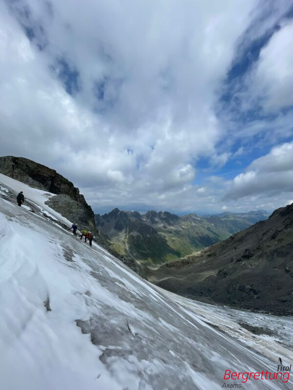 Am Freitag, den 25. Juli 2025, wurde die Bergrettung Axams um ca. 11:00 Uhr zu einem Einsatz im Bereich der Wildkopfscharte, Nördliche Stubaier Alpen, 6181 Sellrain, alarmiert. Eine neunköpfige Gruppe befand sich auf etwa 2.500 Metern Höhe, als eine Person der Gruppe über starke Schwäche, Unwohlsein und Kopfschmerzen klagte. Aufgrund dichten Nebels war ein Hubschraubereinsatz nicht möglich – erschwerend kam hinzu, dass für den Nachmittag starke Regenfälle vorhergesagt waren.